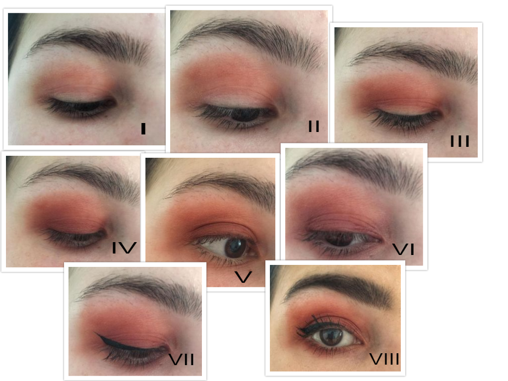 Am realizat machiajul cu nuanțele numerotate mai sus, iar în 8 pași simpli am obținut rezultatul final.